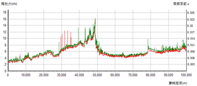 試驗溫度:21℃±2℃; 累計滑動距離:100km;